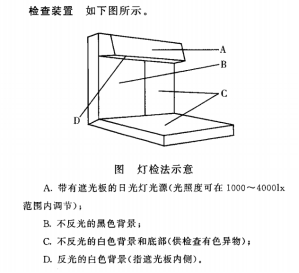 燈檢法又稱人工目視燈檢法,其用人的肉眼按適宜條件觀察注射劑中是否有不溶性物質的存在。燈檢法的裝備:工作臺、椅、燈檢罩。