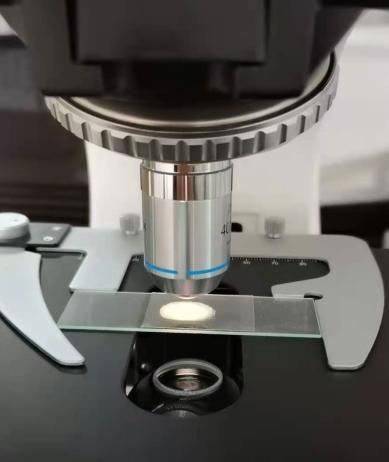 如下圖所示,直接將膠水樣品或固體粉末涂抹在顯微鏡載玻片上,用蓋玻片輕輕按壓蓋上,然后置于顯微鏡下觀察,選擇合適的顯微鏡物鏡,調節到最佳視野后利用軟件進行抓取圖片,然后移動到另外視野下抓取圖片,連續抓取幾個視野,確保有足夠多的顆粒。然后進行分析顆粒的粒度分布和晶型觀察