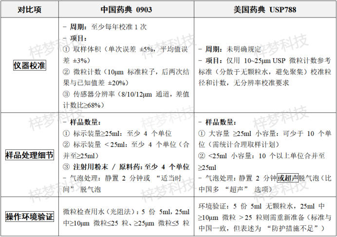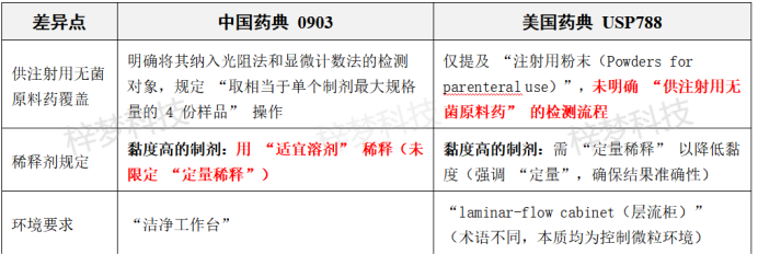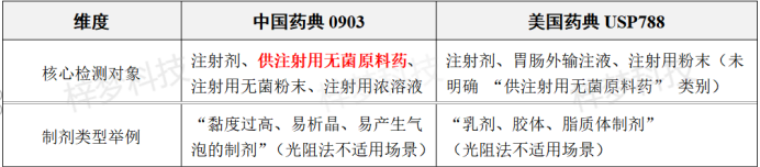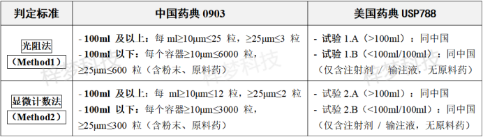 兩者核心檢測邏輯和合格標準一致,但中國藥典 0903 更側重 “規范性和細節量化”(如明確校準周期、樣品數量、濾膜微粒限度、原料藥覆蓋),美國藥典 USP788 更側重“靈活性”(如校準周期未限定、樣品數量可減少、氣泡處理可選超聲)。
